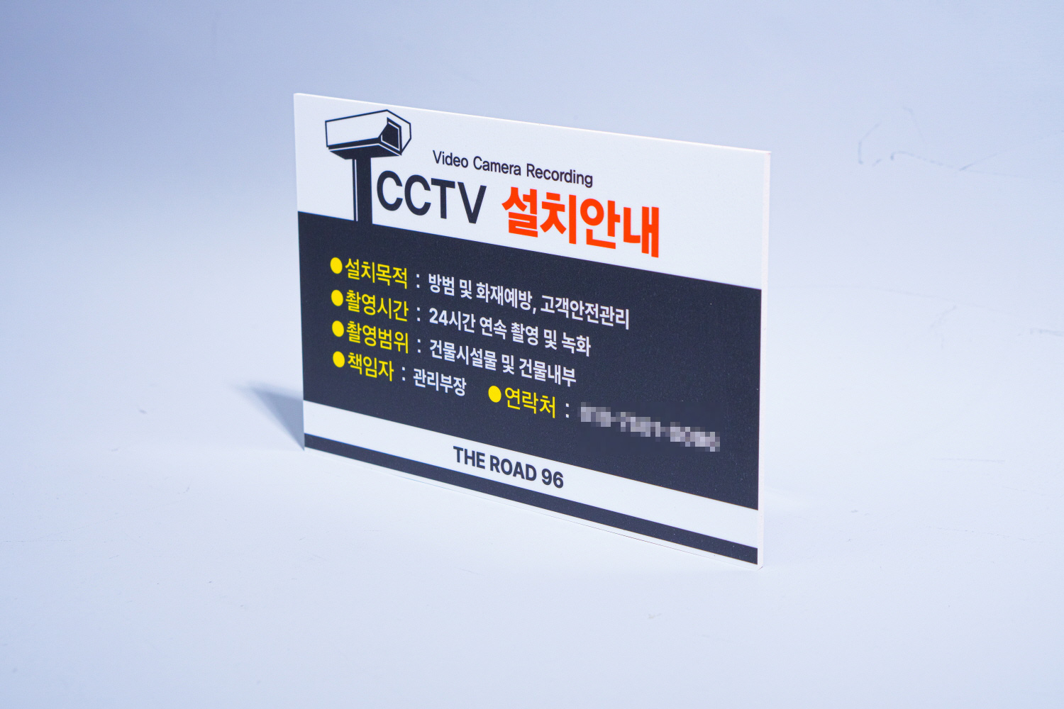 cctv 설치 안내판은 cctv 설치구역 주변에 부착하여 촬영여부를 알려주는 안내판으로