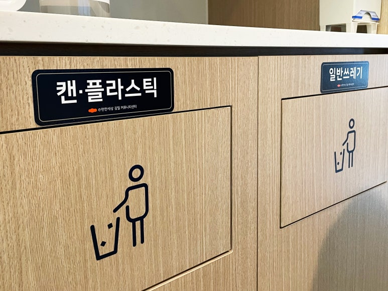 쓰레기를 잘 구분해 넣을 수 있도록 분리수거 스티커를 제작해 부착해 드렸습니다!