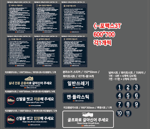 각종 이용수칙과 바닥안내스티커 등 요청하셨던 대로