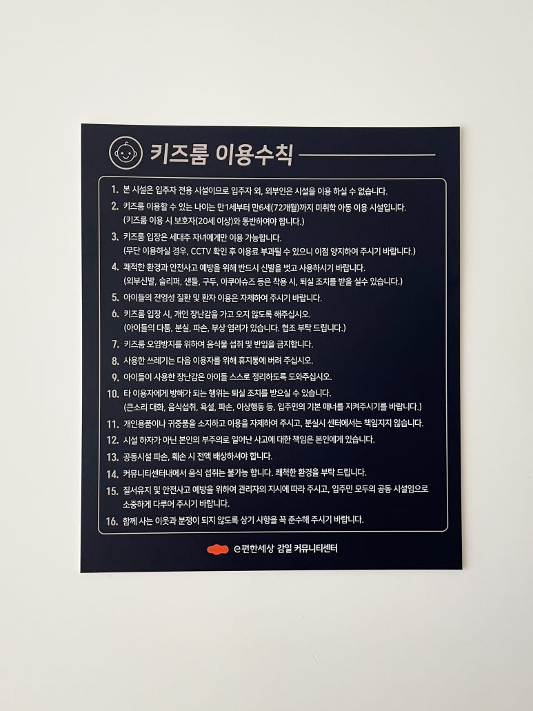 다음은 키즈룸 이용수칙 안내판입니다~!