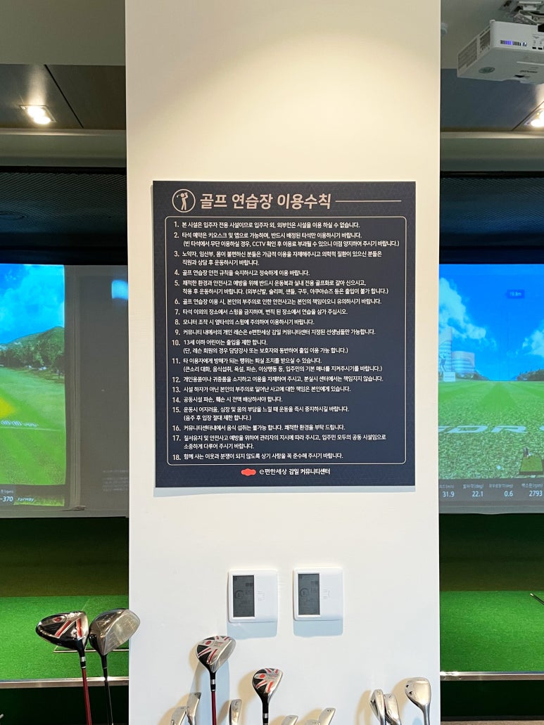 위 이용수칙 안내판은 골프 연습장 이용수칙입니다~