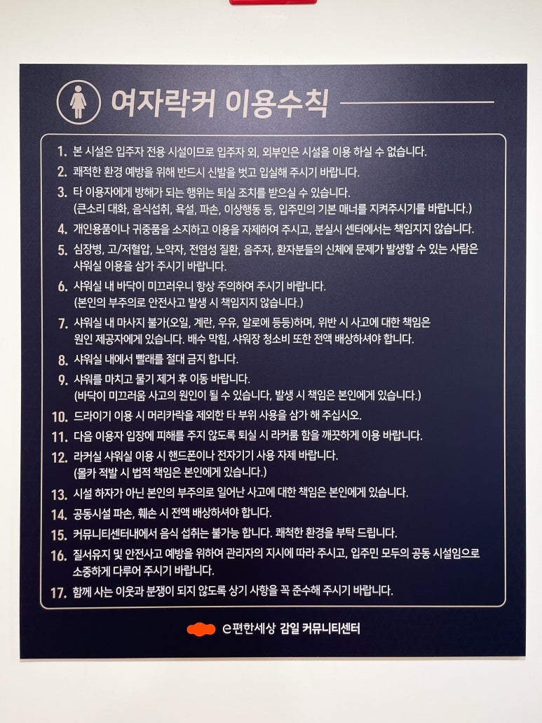 아파트 단지 내에 있는 피트니스, 라커룸 등 이용수칙을