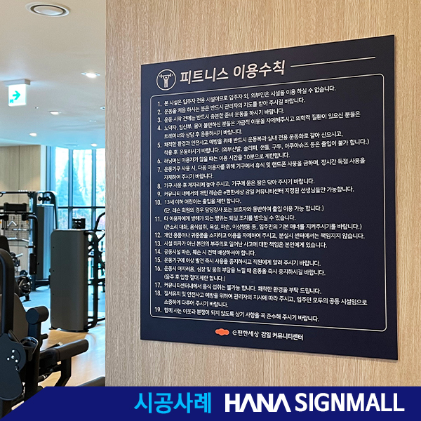 오늘은 주문 제작한 피트니스, 라커룸 등 이용수칙을 알려줄 안내판과