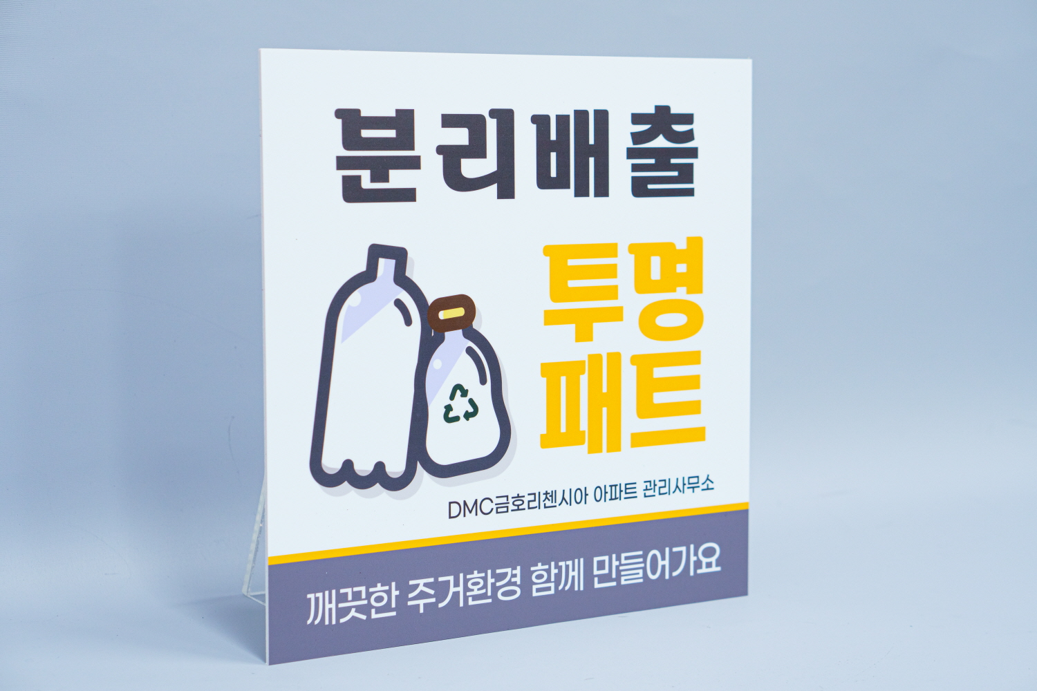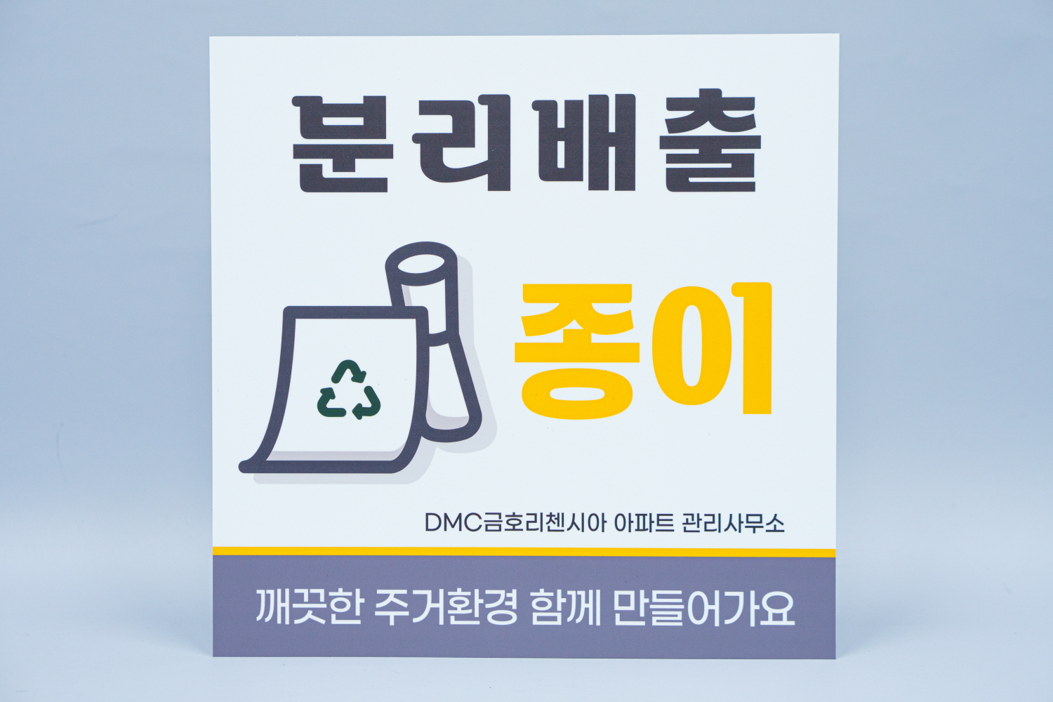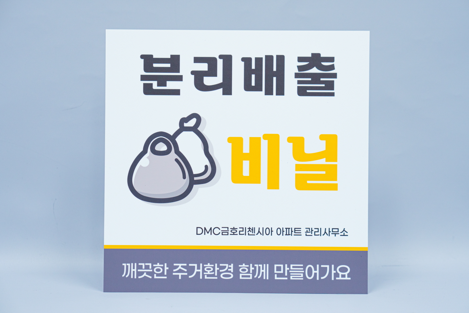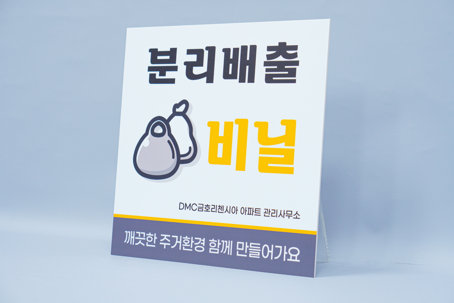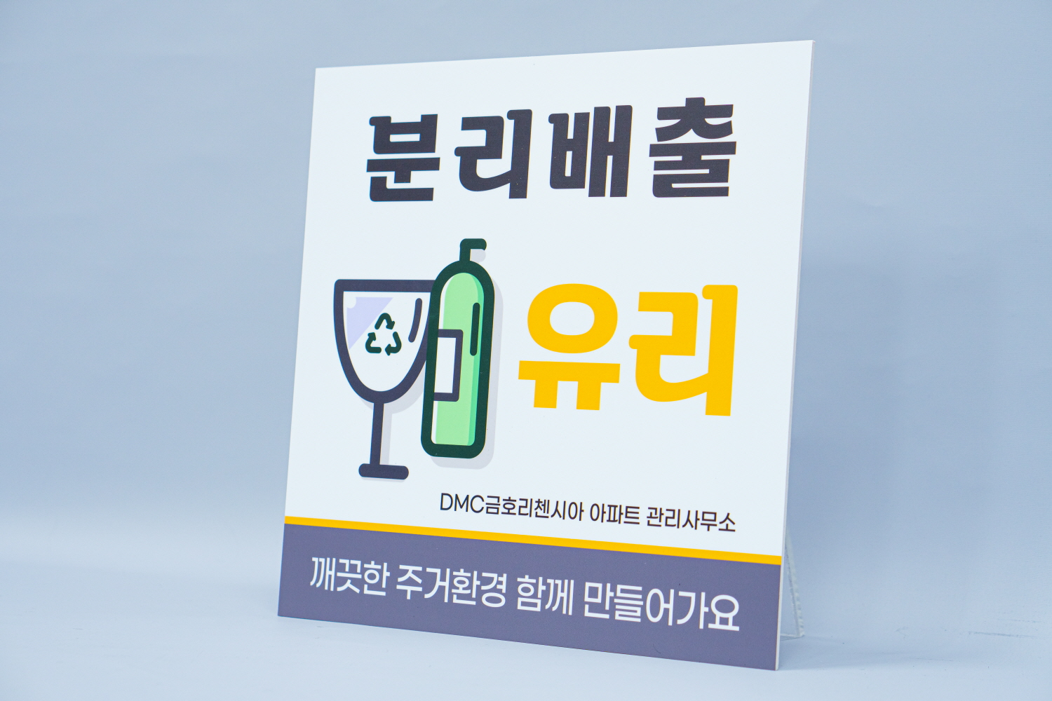 분리수거 표지판, 분리배출 안내판은 아파트, 상가, 등에서 많이 사용되고있습니다.