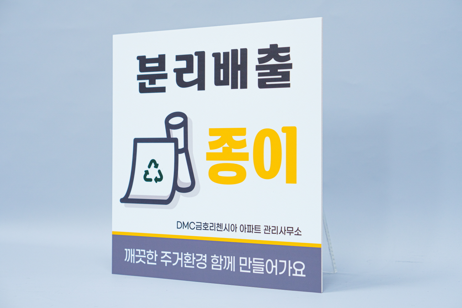 분리수거 표지판은 포맥스로 가볍고 단단하게 제작되어 설치시