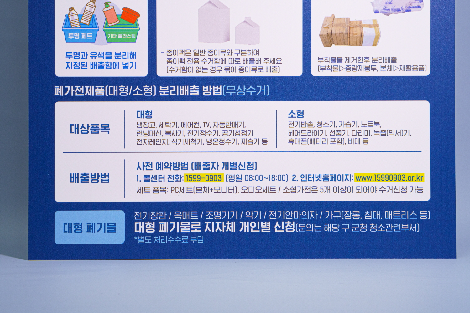 은계어반리더스 에서 주문해 주신 재활용품 분리배출 안내판도 깔끔하게 제작이 되어 나왔습니다.