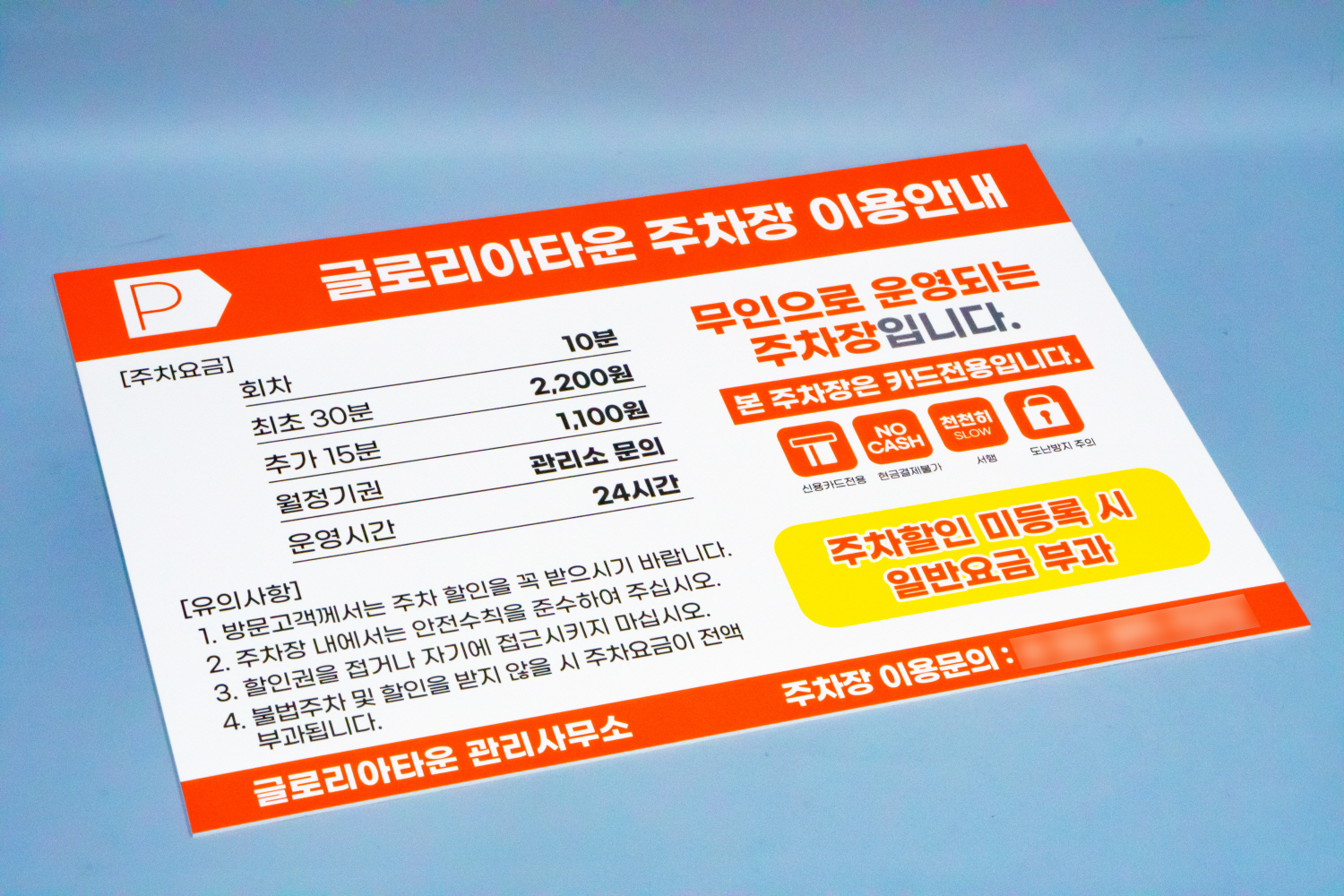 방문한 고객 전용 주차장 위치를 알리기 위해 주문해 주셨습니다.