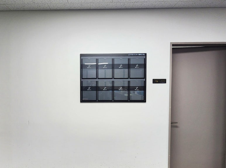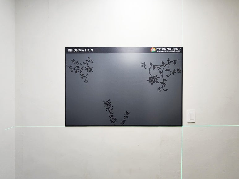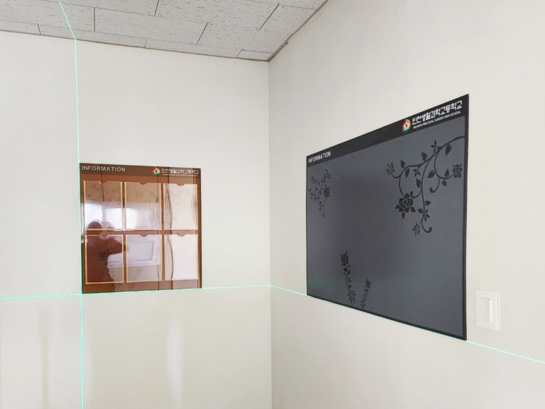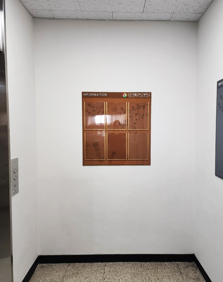 학교 엘리베이터 앞에 공지사항을 볼 수 있도록 벽면에 시공 도와드렸습니다~!