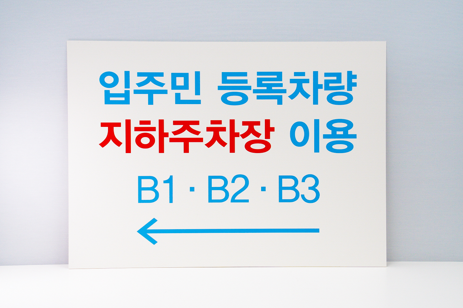 지하주차장 벽면에 부착하여 사용하는 안내판 입니다.