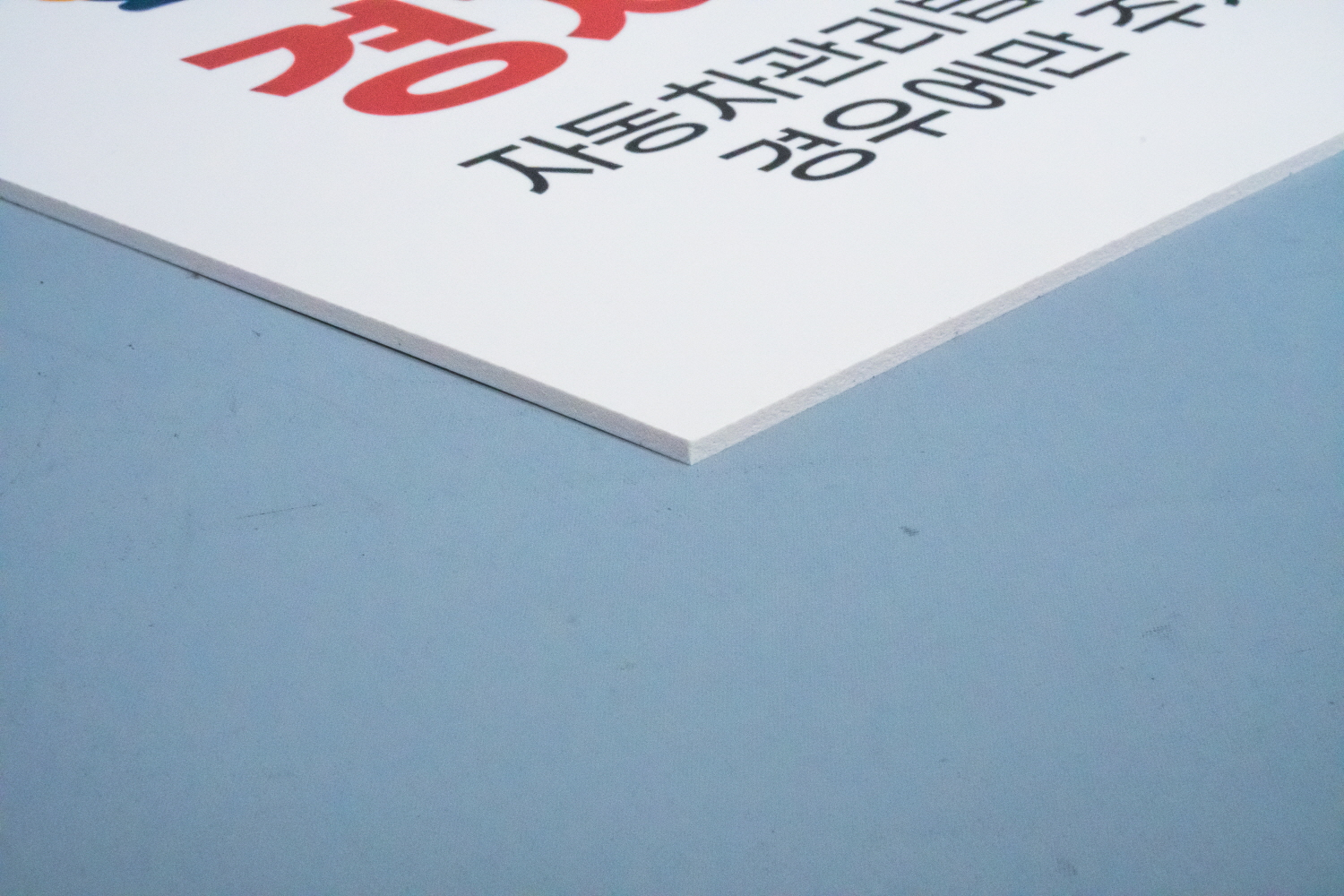 가볍고 단단하여 심하게 훼손 될 일 없는 포맥스 타입의 안내판입니다.