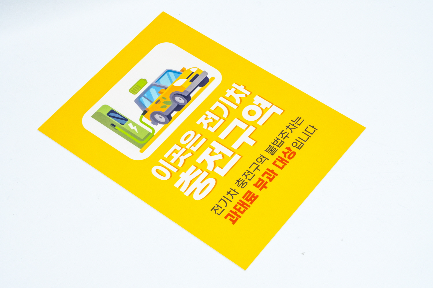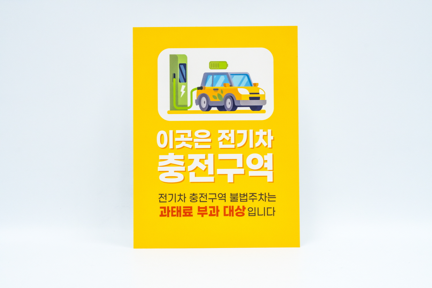 전기 차량 이외 다른 차량이 주차하지 못하도록 안내판을 주문해 주셨습니다.