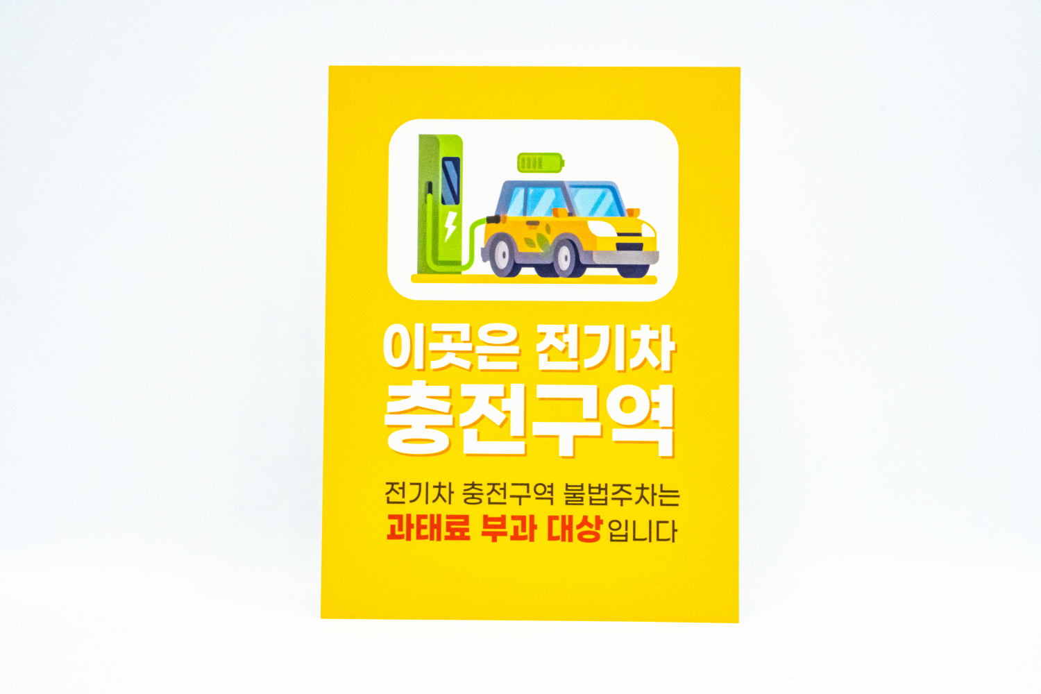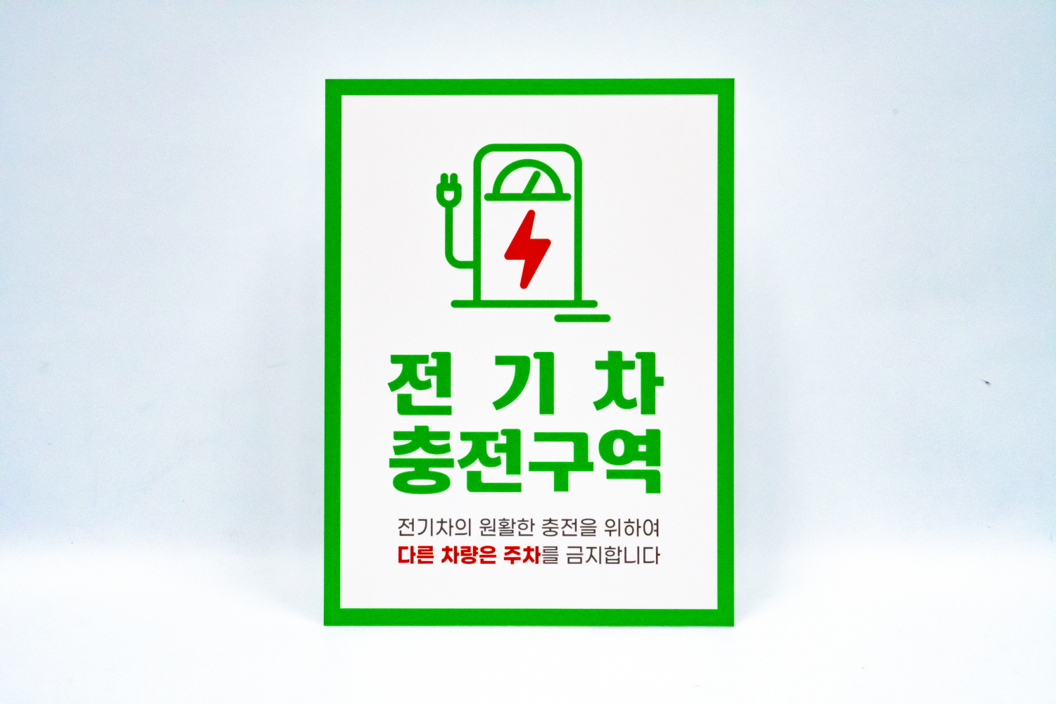전기 차량 이외 다른 차량이 주차하지 못하도록 안내판을 주문해 주셨습니다.