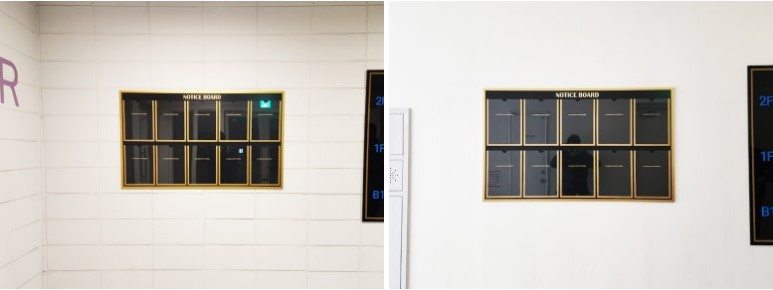 공동현관에는 10구 게시판을 시공해 드렸습니다~