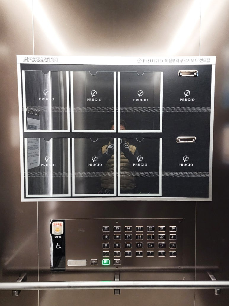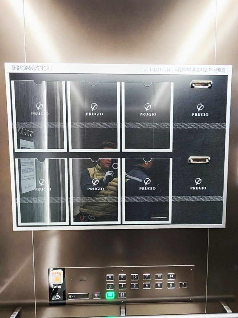 사람들이 자주 이용하는 엘리베이터 내부에 시공 도와드렸습니다~
