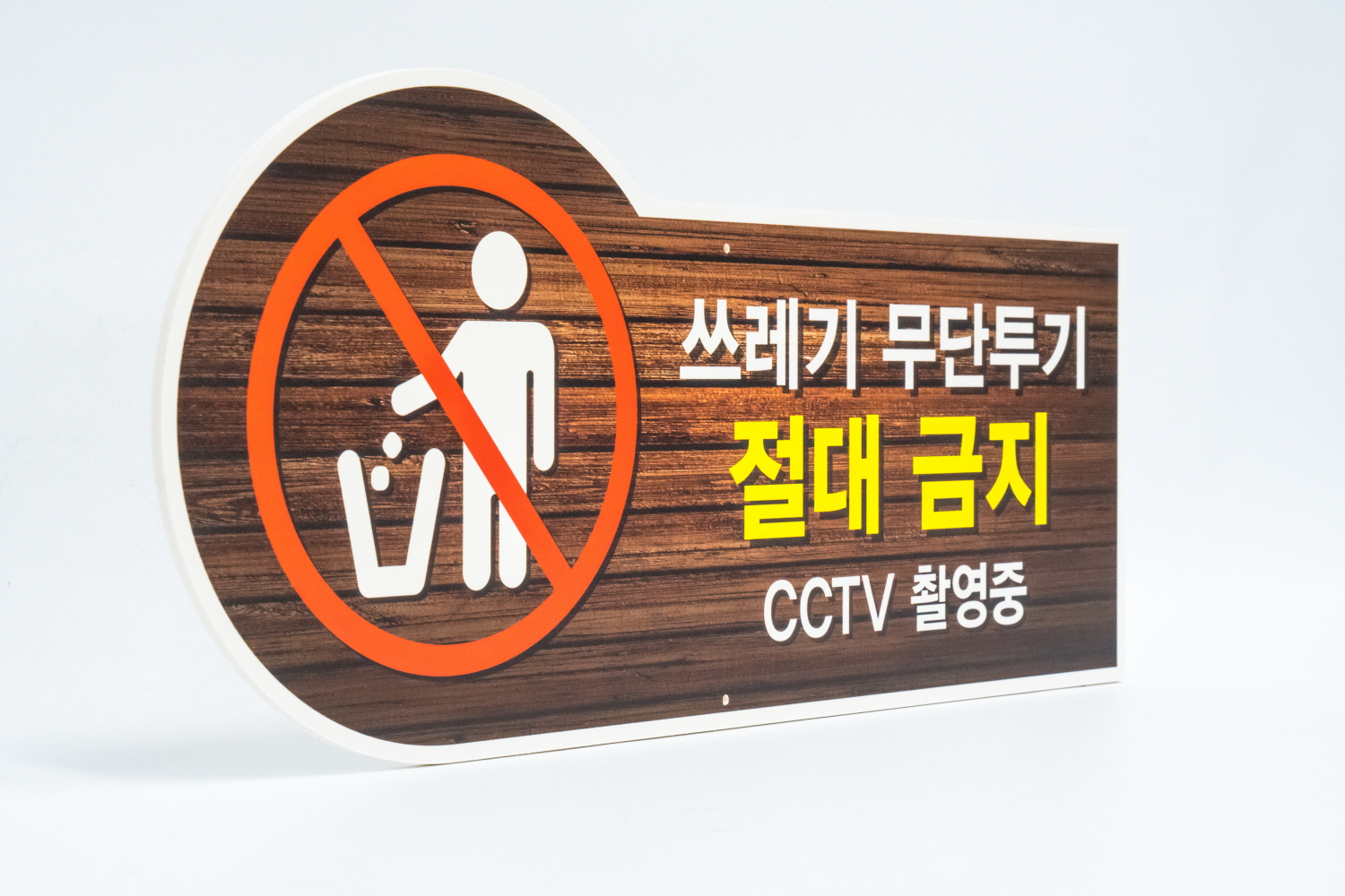 해당 표지판은 쓰레기 무단투기를 금지할 것을 알리는 표지판입니다.