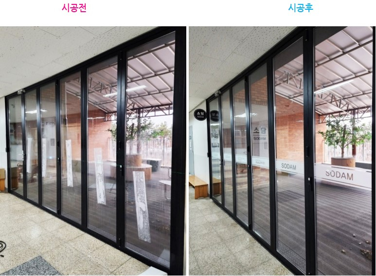 출입문 그래픽과 돌출간판 등을 제작 및 시공을