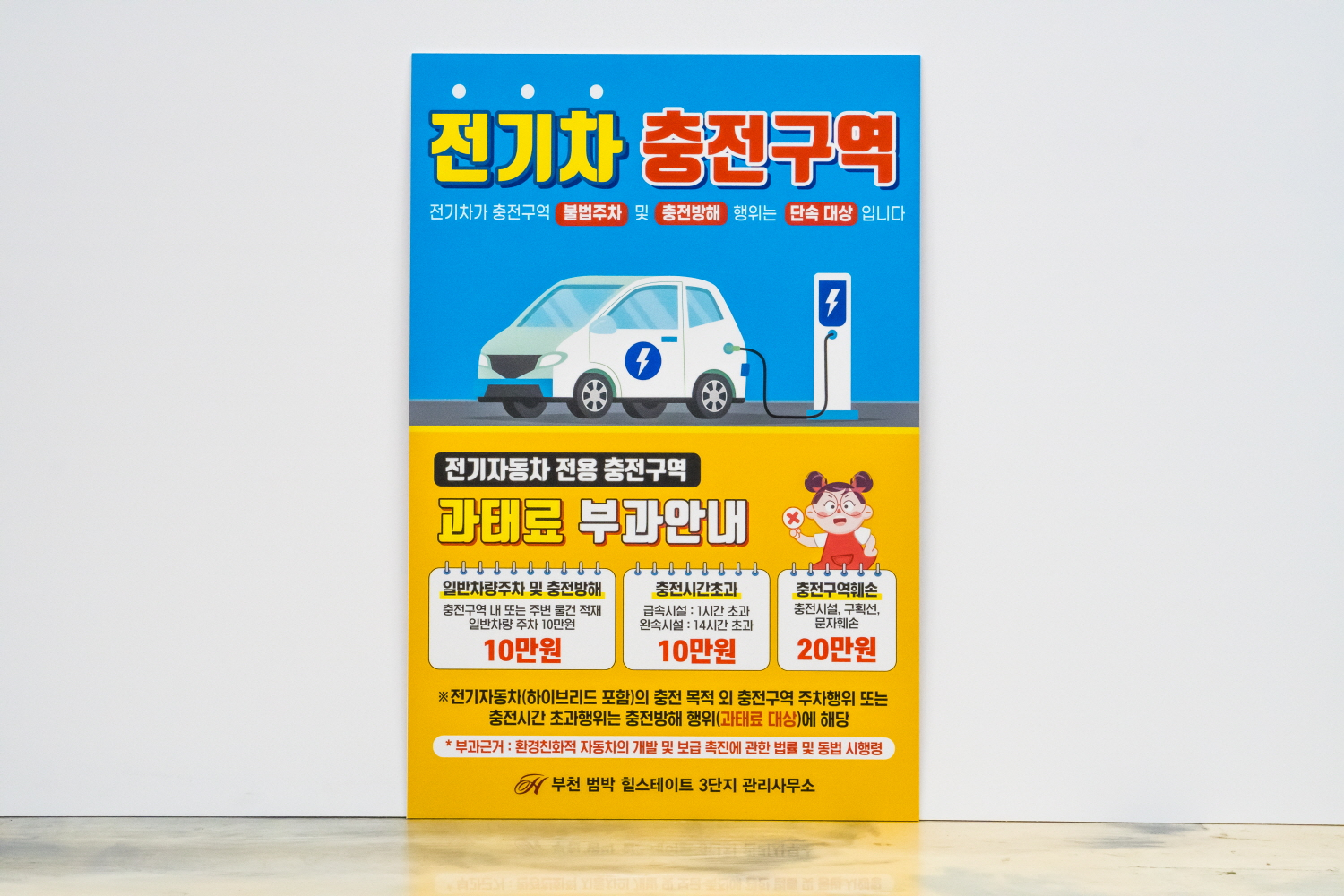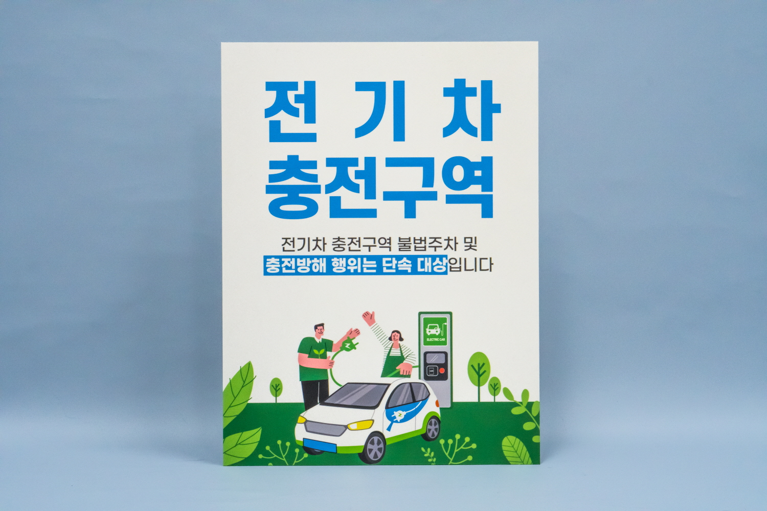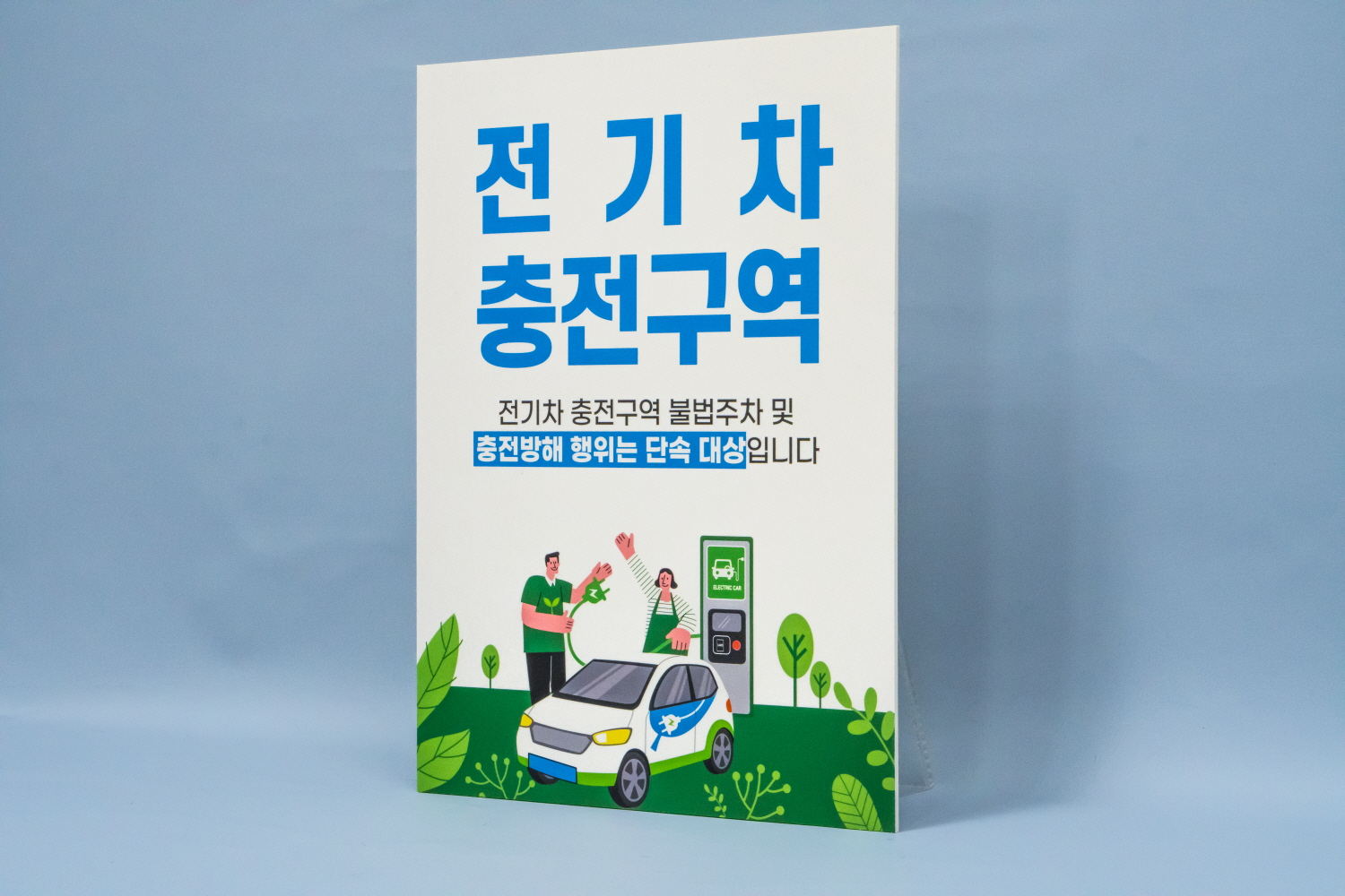 전기 차량 이외 다른 차량이 주차하지 못하도록 안내판을 주문해 주셨습니다.
