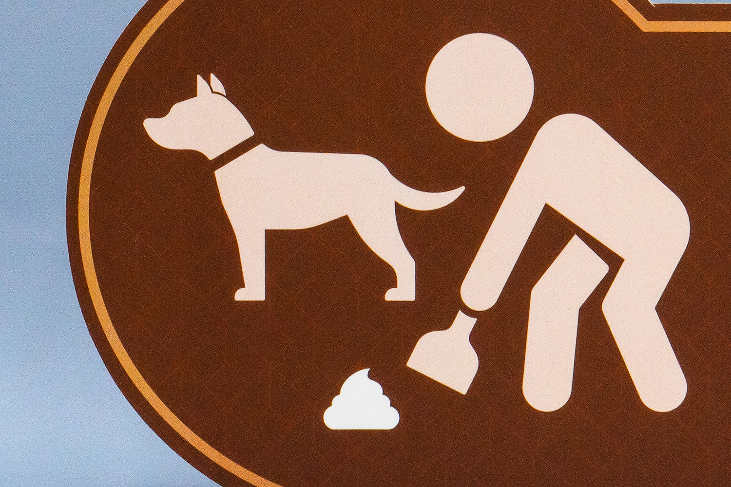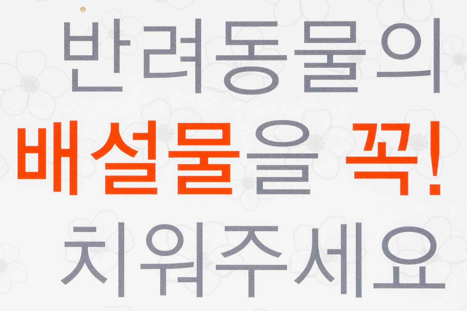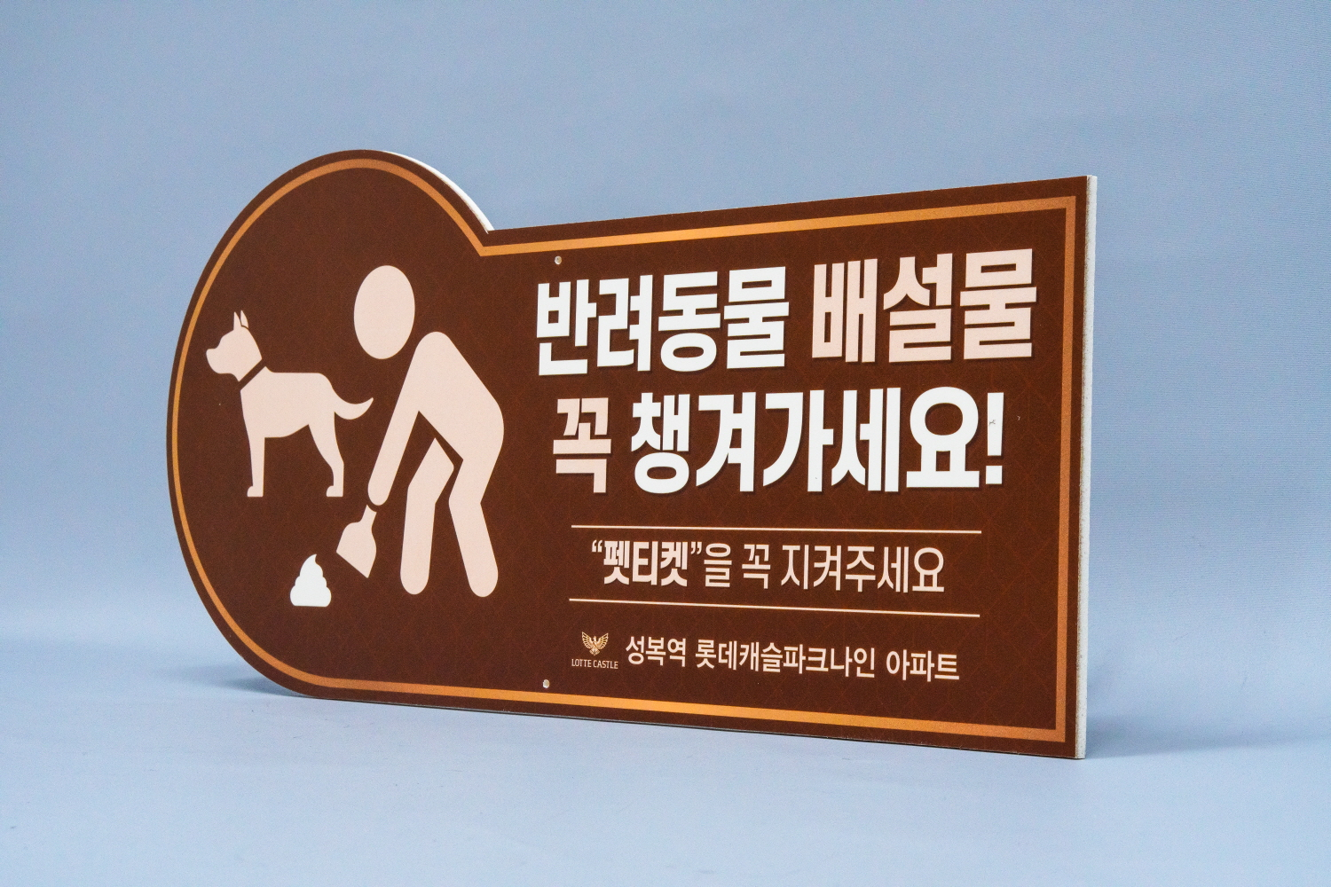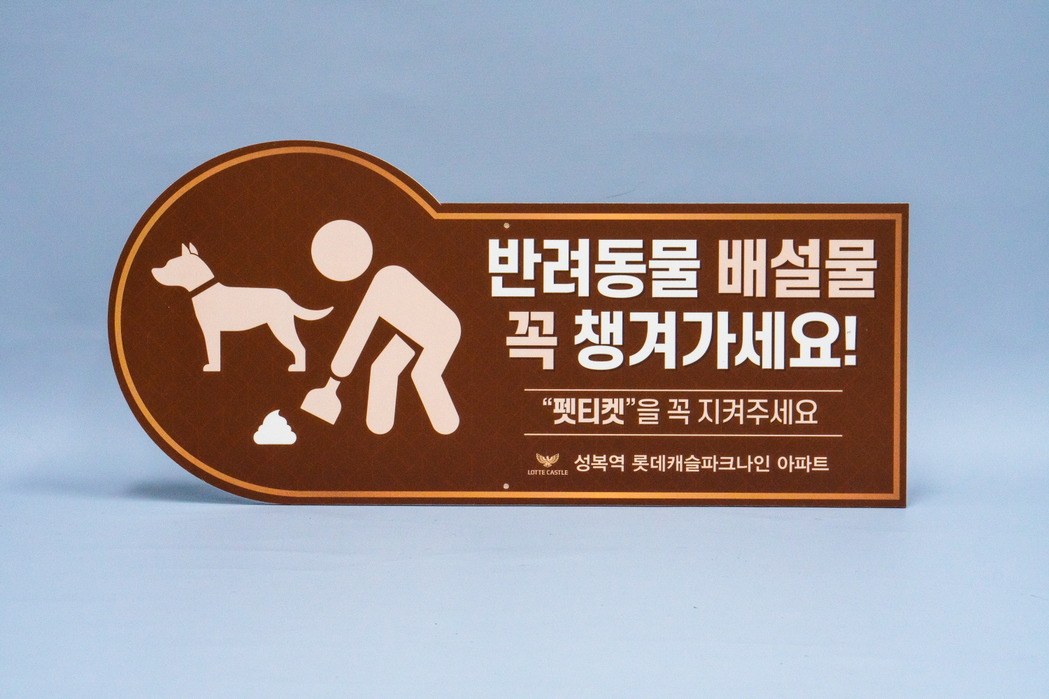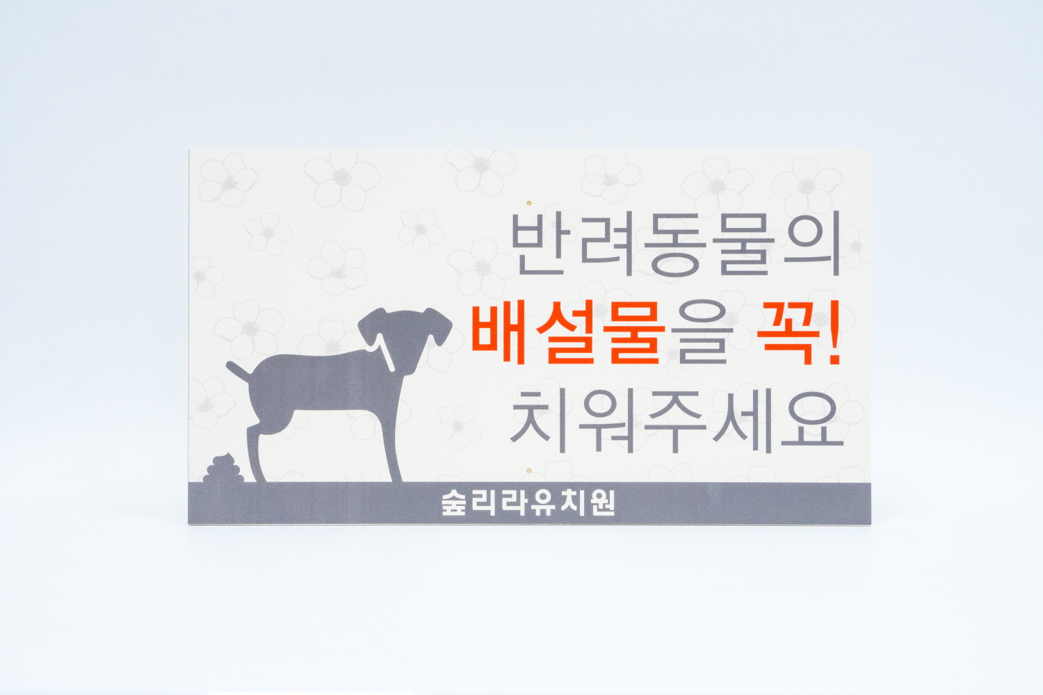 해당 안내판은 반려동물 배설물을 치워달라는 문구가 적혀있습니다.