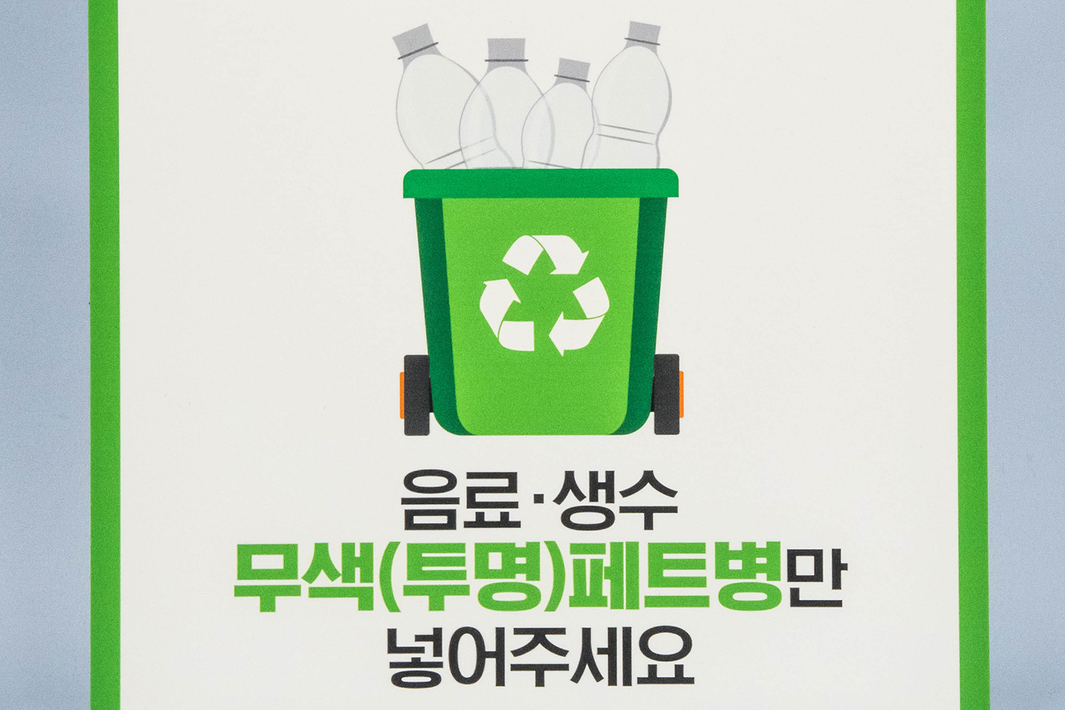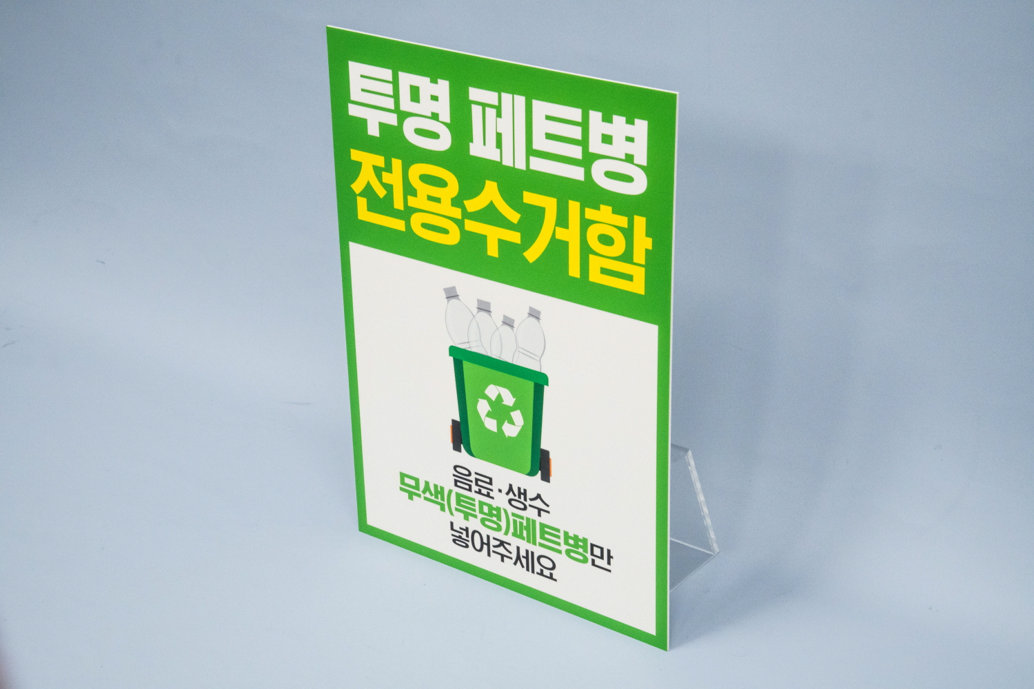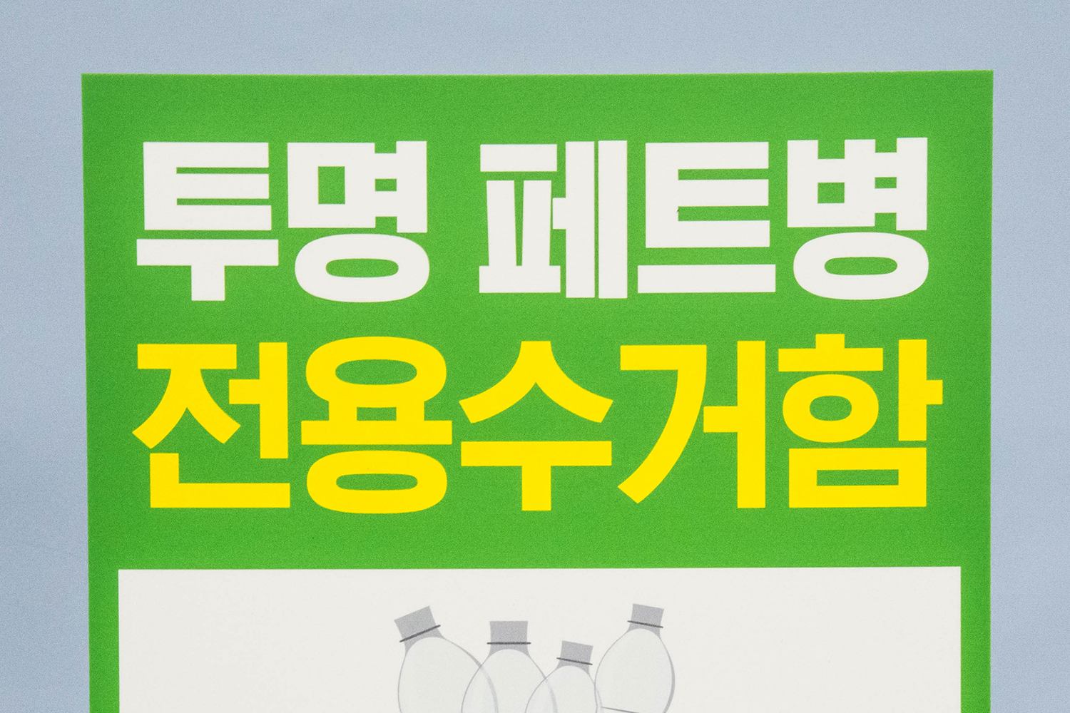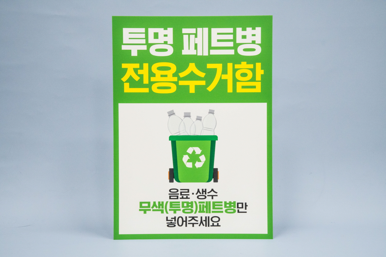 투명 페트병 분리수거 하는것을 알리는 안내판 입니다.