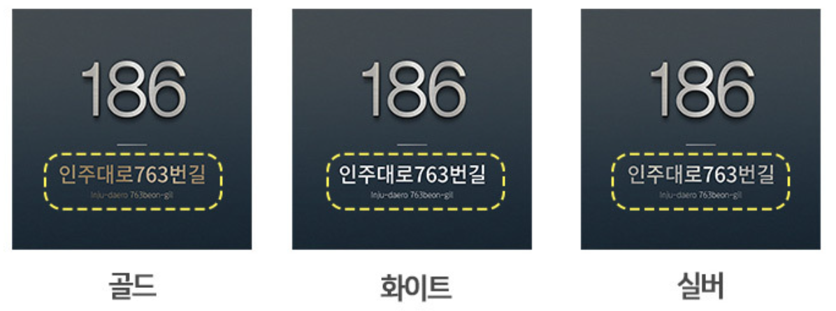 주소 안내판은 포맥스 재질 외에 금속, 반사지 타입으로도 제작이 됩니다.