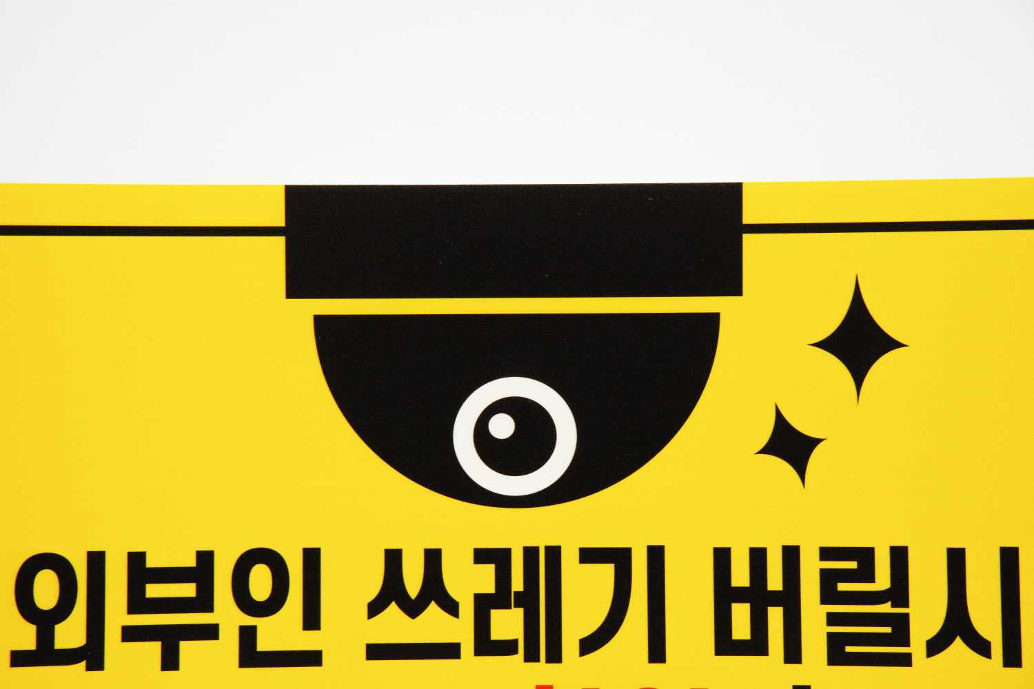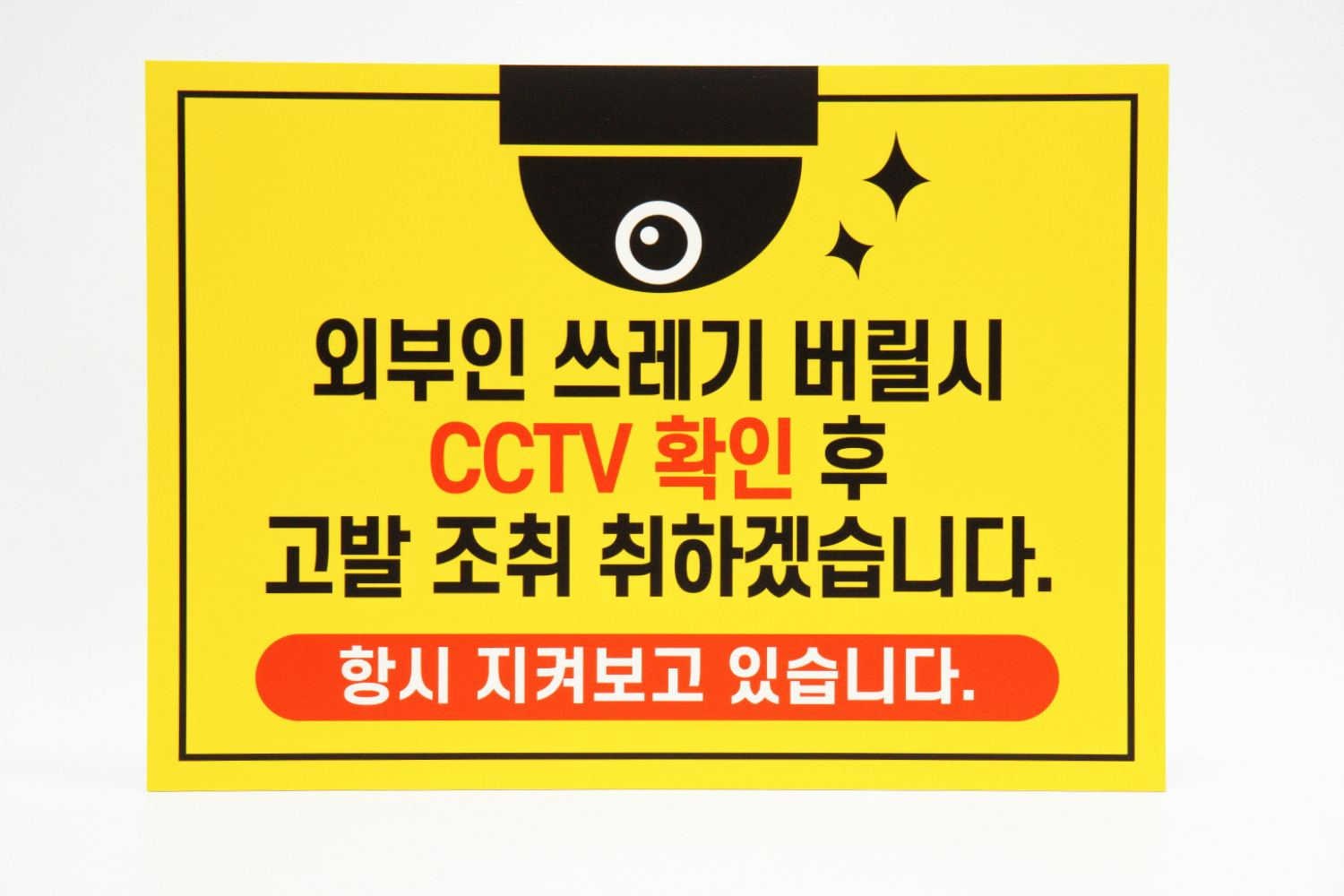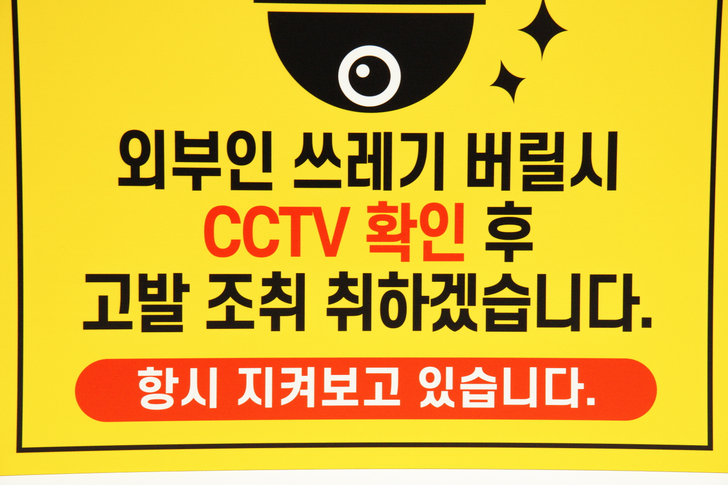 다음으로 외부인 쓰레기 무단 투기 금지 CCTV 경고판입니다.