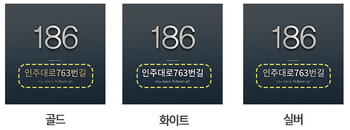 주소현판 건물번호판 텍스트 색상은 3가지로 선택이 가능합니다.