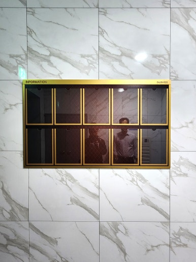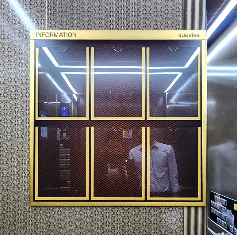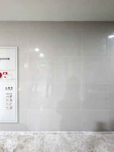 설치 위치는 엘리베이터 입구와 내부, 즉 사람들이 가장 많이 다니는 공간에 시공했습니다~