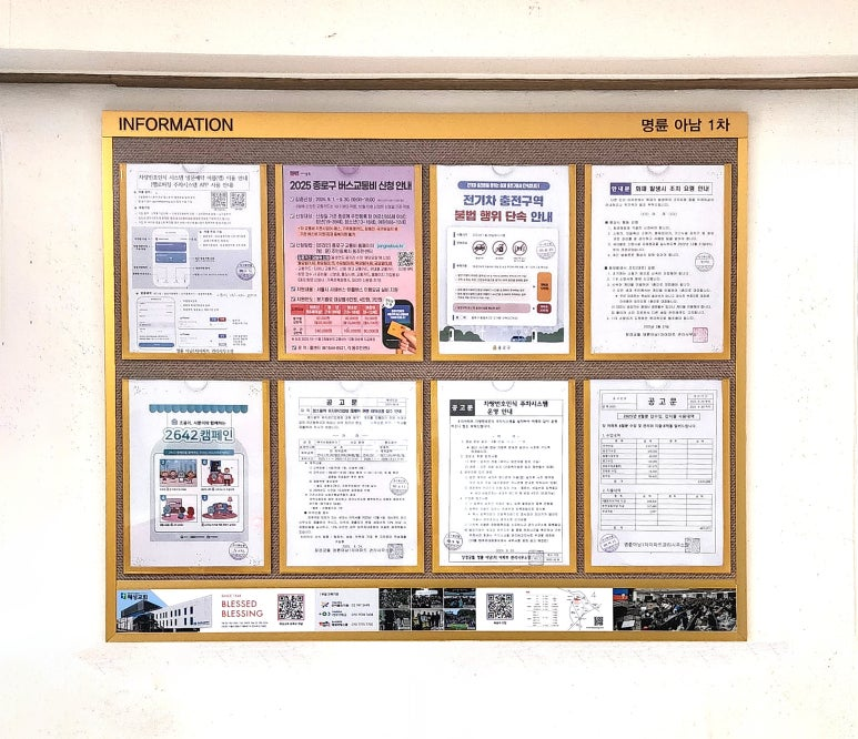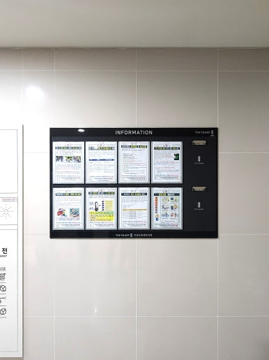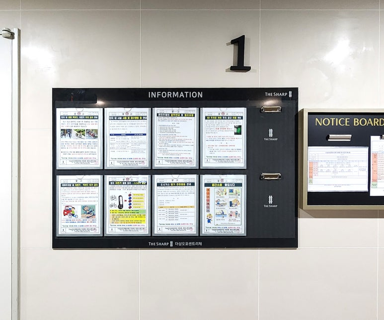 입주민분들이 지나가며 공지사항을 쉽게 확인할 수 있도록, 시야가 잘 들어오는 위치에 설치했습니다!