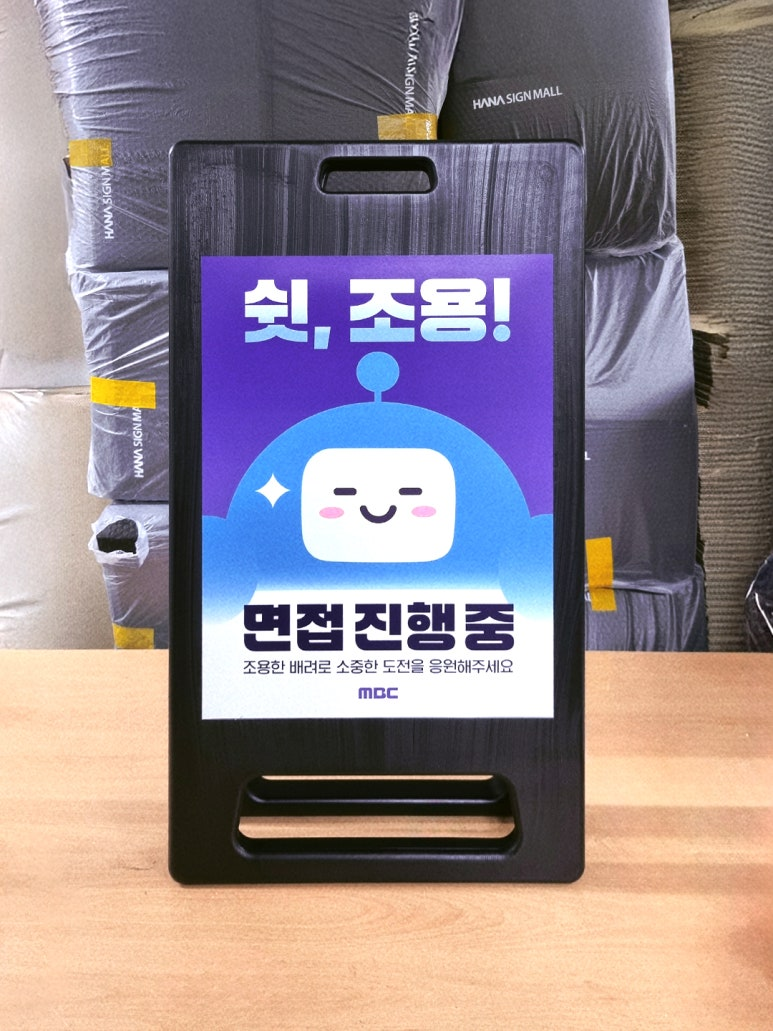 면접이나 촬영, 회의 등 진행 중인 공간에 출입을 제한하기 위해 제작된 입간판이에요~!
