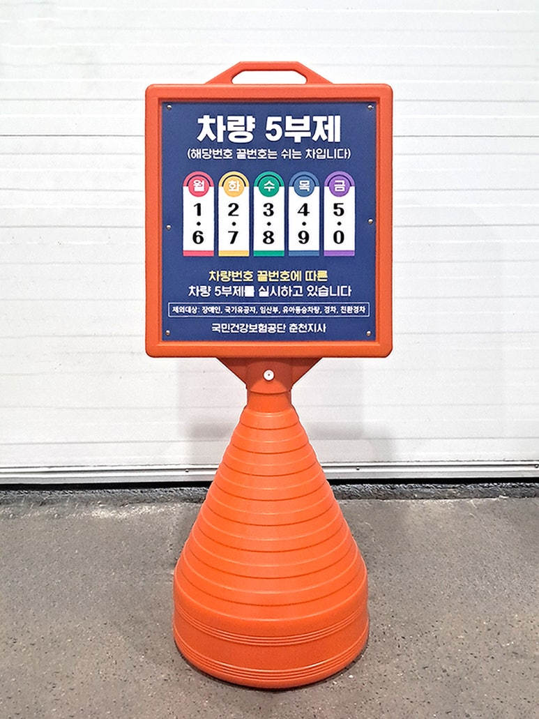 차량 5부제 시행 (주황 / 대형 오뚜기 입간판)