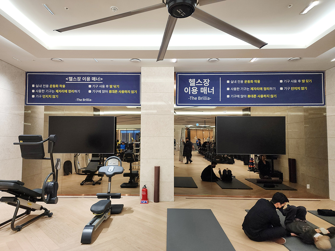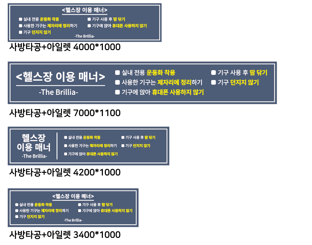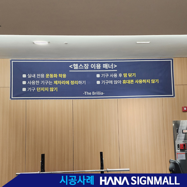 헬스장 내 3개 주요 공간에 현수막을 설치했습니다