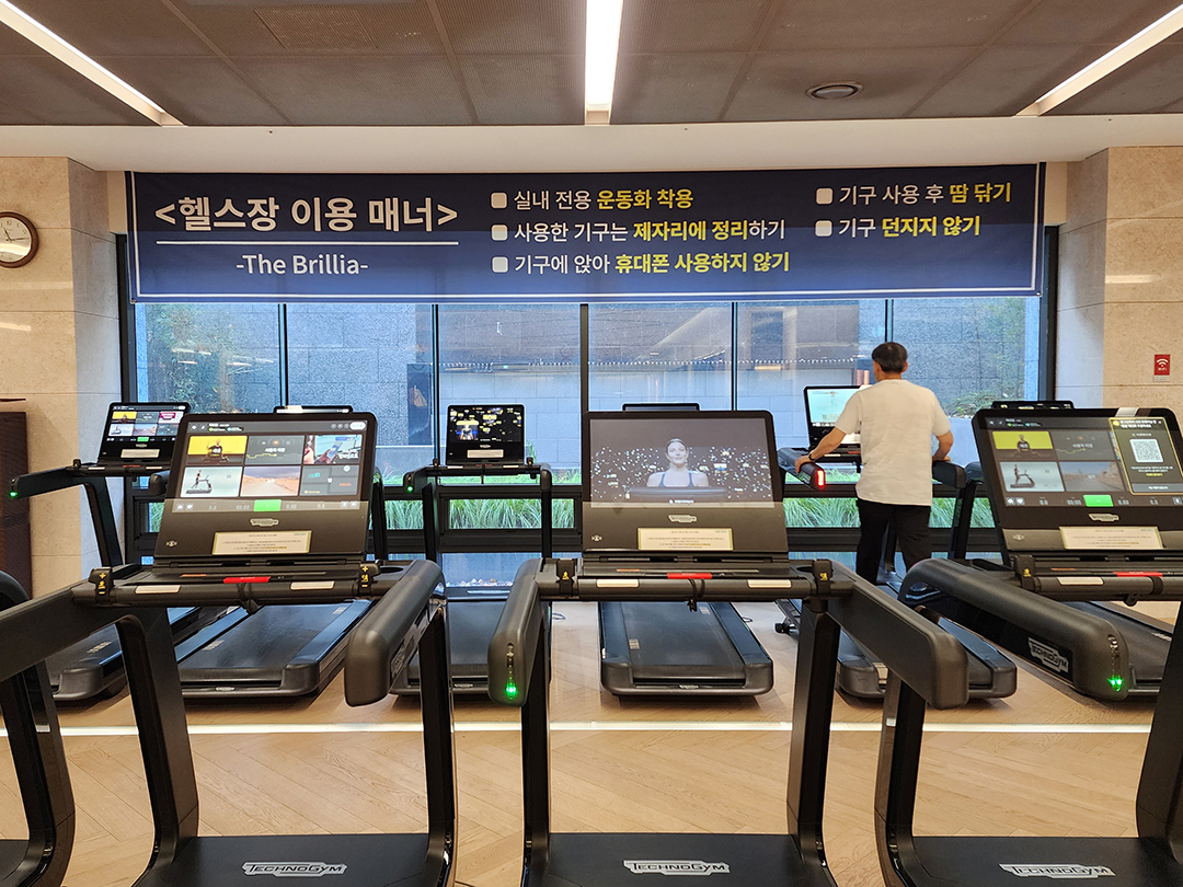 러닝머신 구역: 외부 창을 배경으로, 자연광과 어우러지게 시공