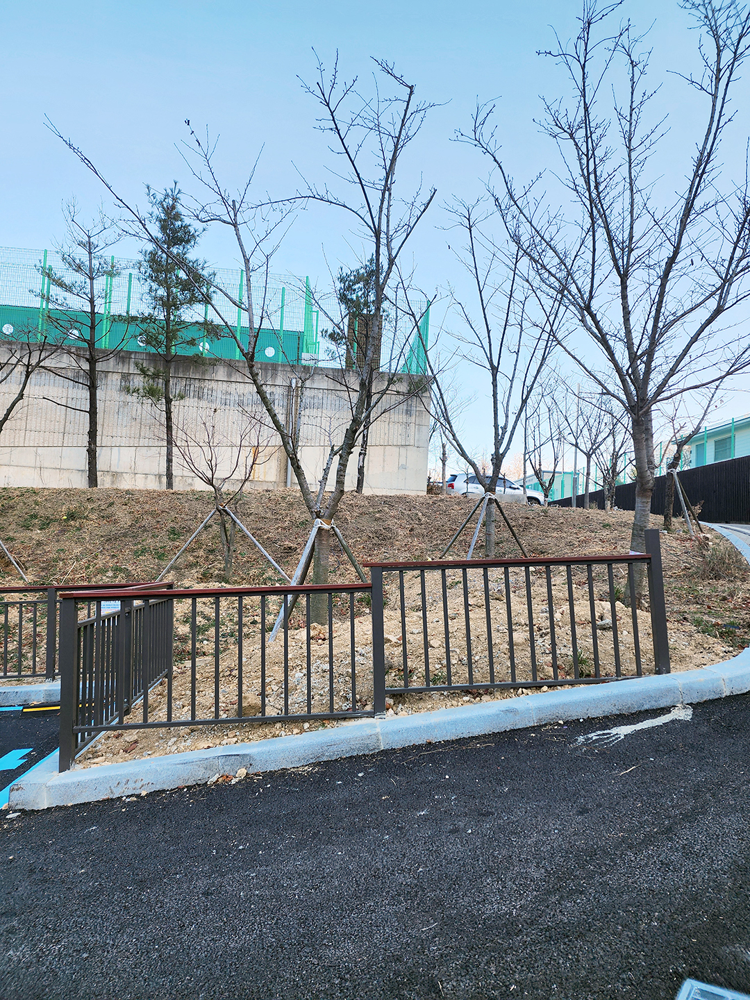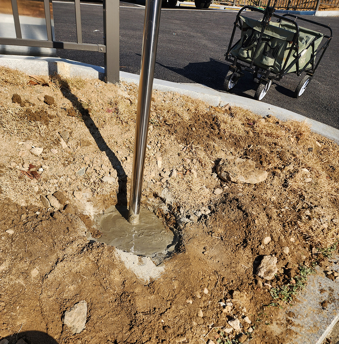 스테인리스 지지대를 깊이 고정한 뒤, 콘크리트로 단단히 마감했습니다.