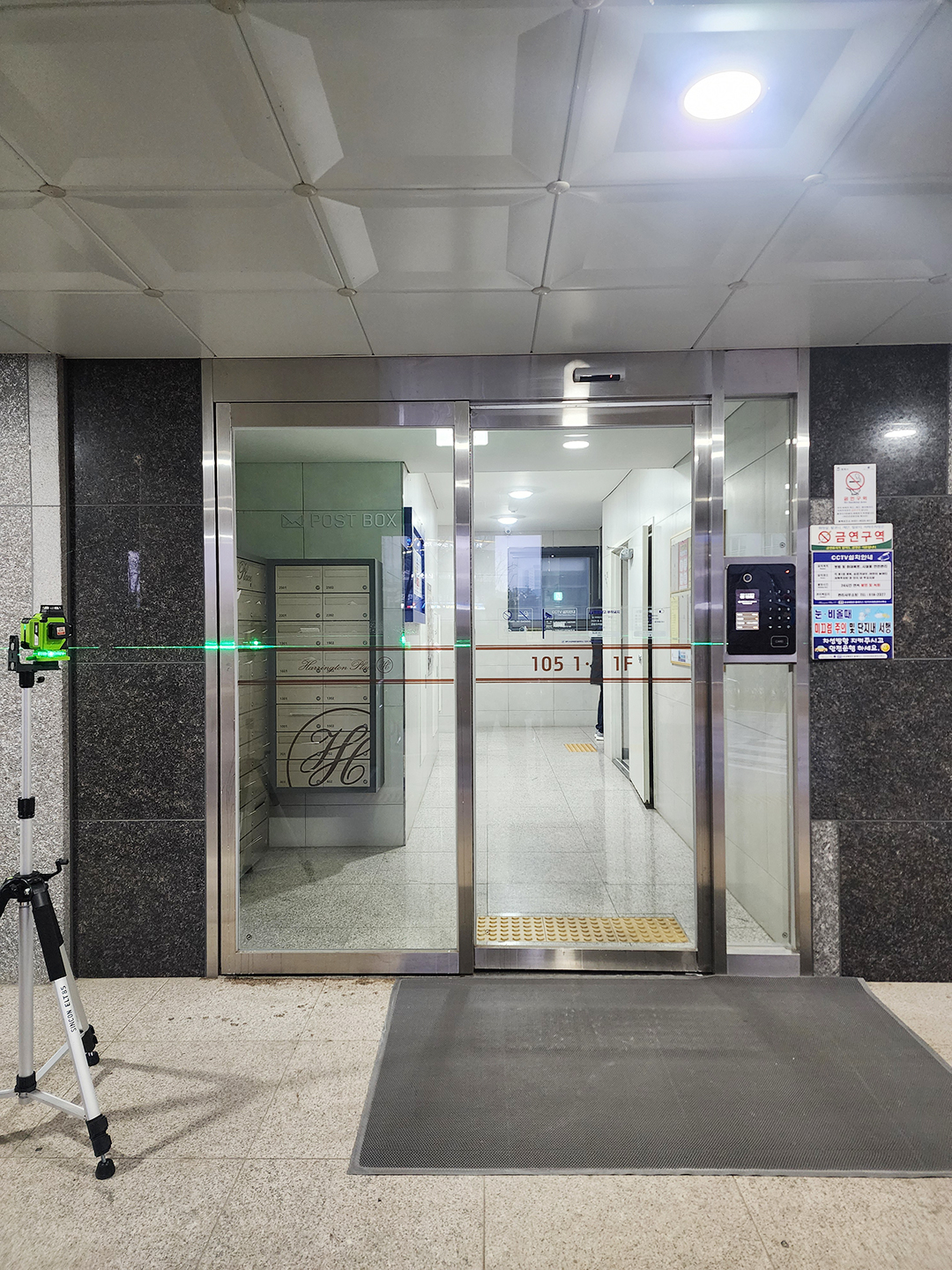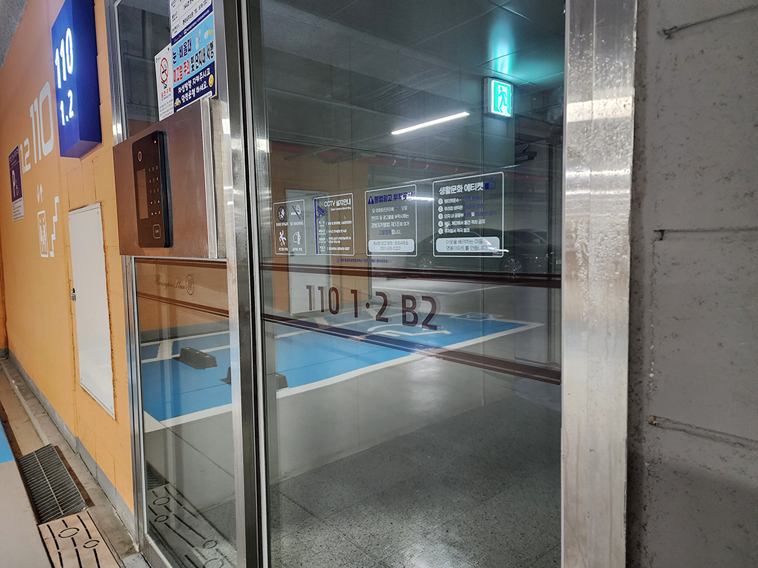동과 층수를 안내하는 투명스티커 시공이었어요.