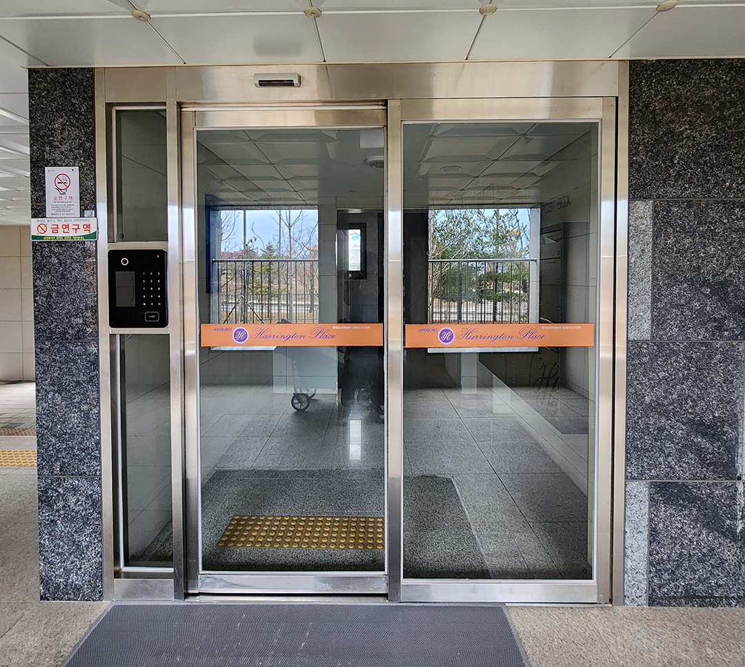 유리문에 직접 부착하는 방식으로 시공이 진행되었습니다.