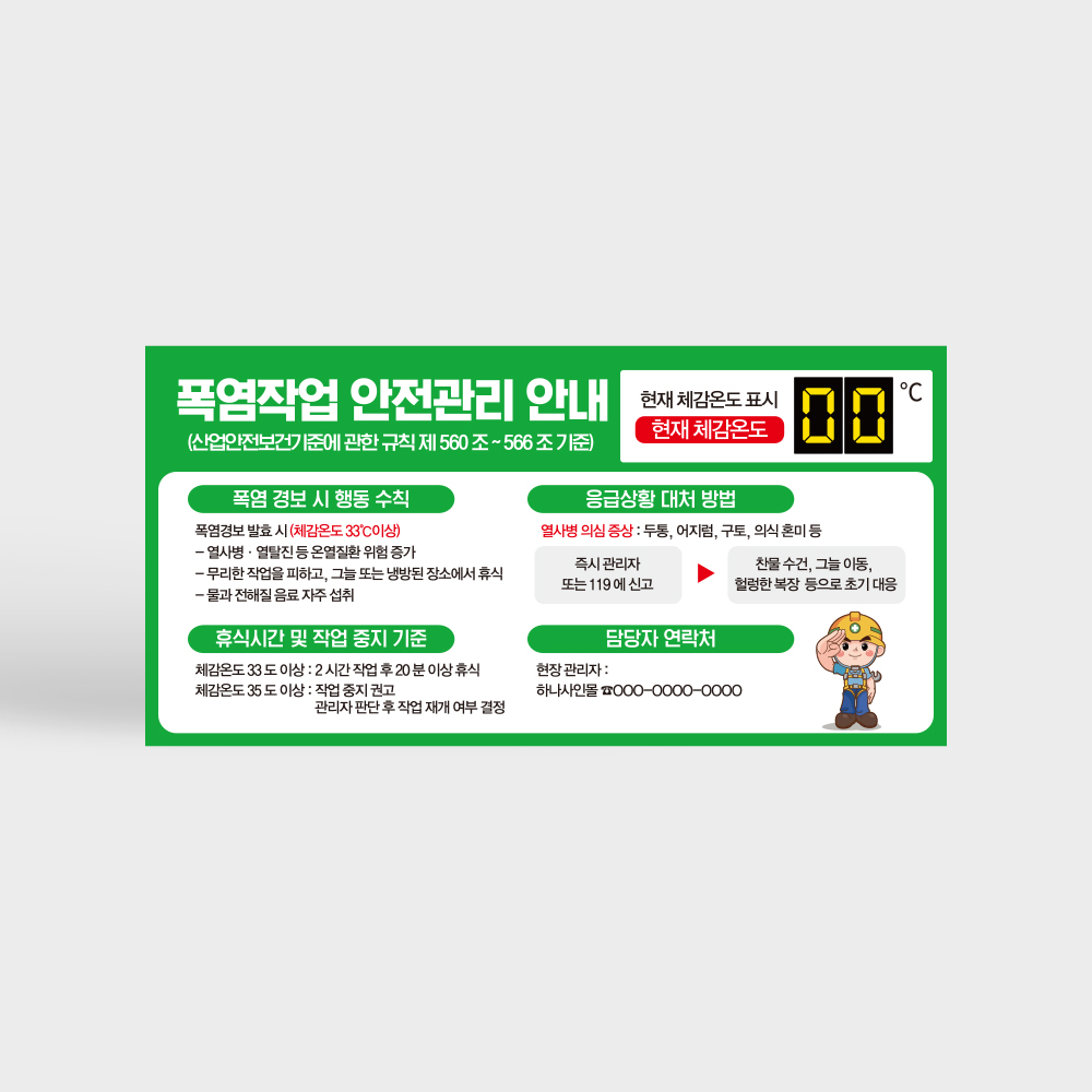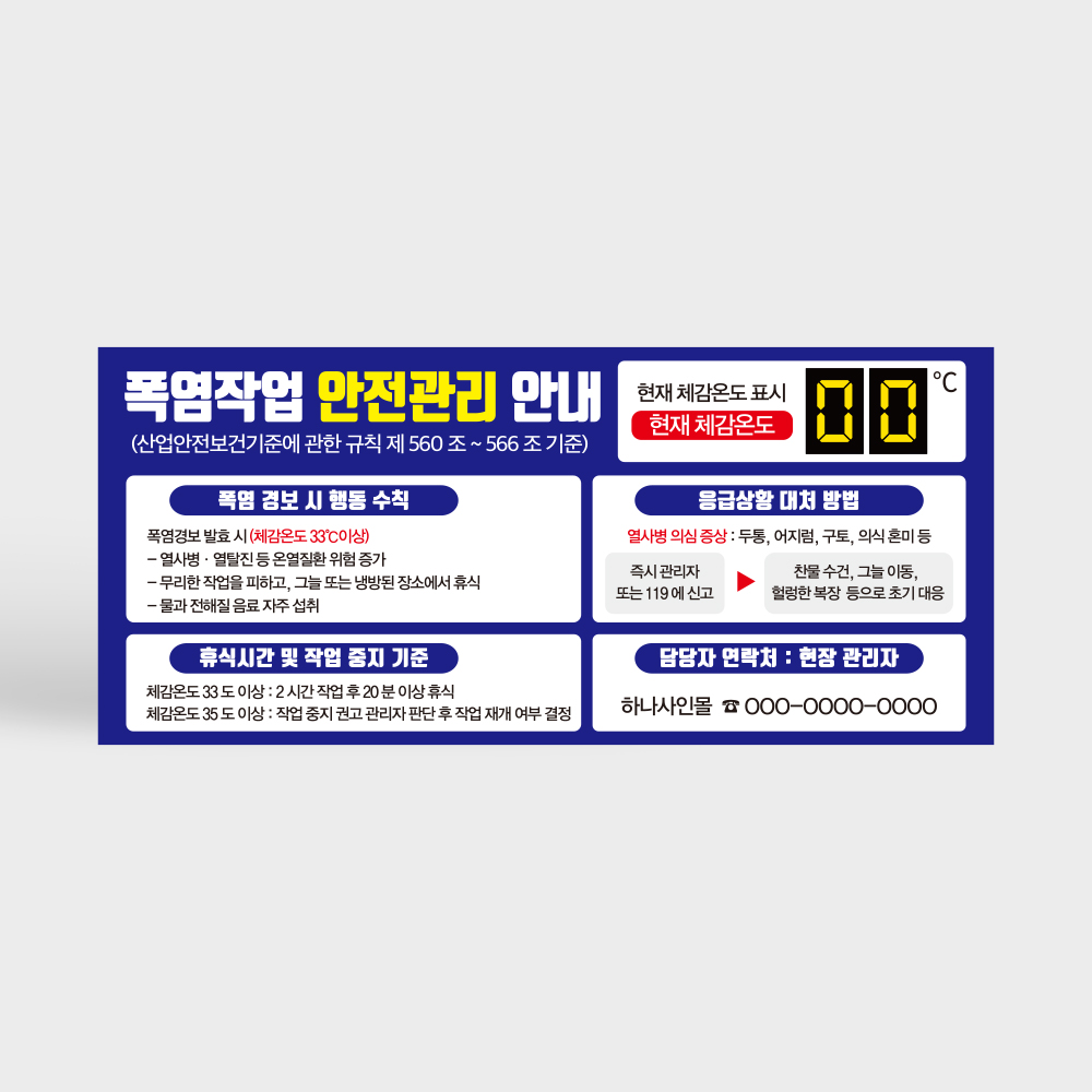 폭염작업 안전관리 안내판 포맥스 / 자석시트 + 모듈방식 대형 타입