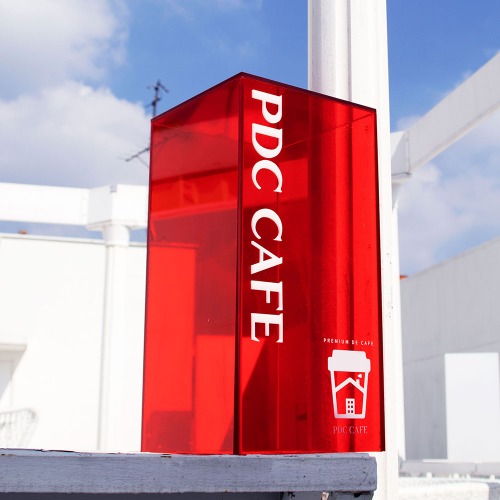 루나 레드 아크릴입간판 아크릴 큐브 박스 스탠드 미니 포인트 이쁜 입간판 입구 간판