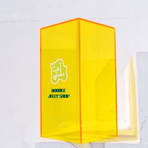 루나 옐로우 아크릴입간판 아크릴 큐브 박스 스탠드 미니 포인트 이쁜 입간판 입구 간판