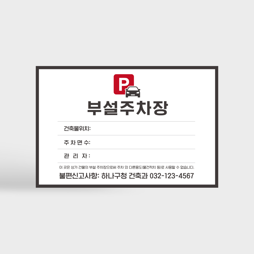 건축물 부설 주차장 표지 안내판 직사각형 타입